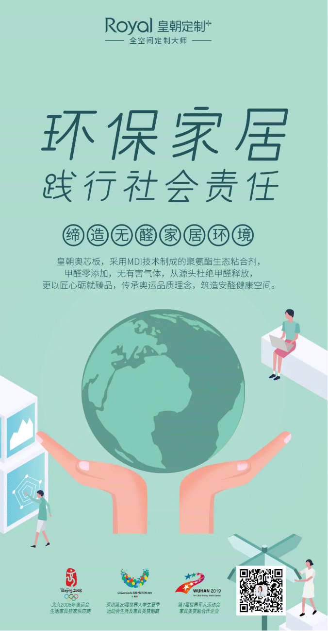 拒绝甲醛,筑造健康安心家,皇朝定制+从源头出发,与大牌供应商合作,推出皇朝无醛奥芯板,环保升级,无醛添加,更是延续皇朝集团奥运品质理念,让消费者放心置家。