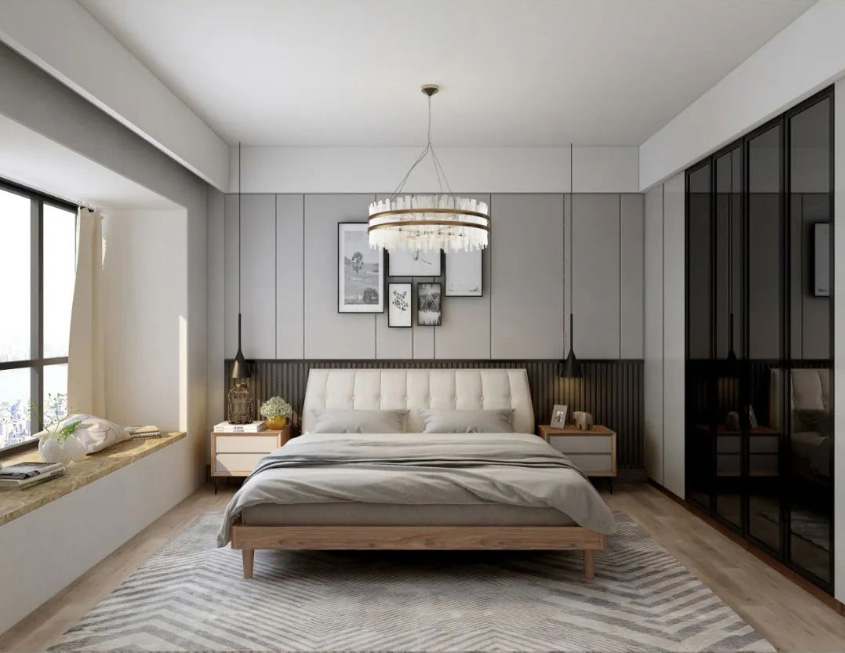 温润的原木色调,搭配经典意式床屏设计,烘托了卧室的静谧舒适氛围。